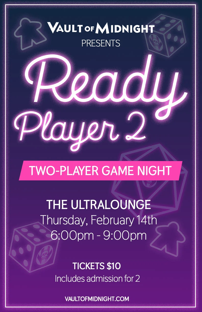It is our immense pleasure to announce an unprecedented 2-player edition of Vault of Midnight Game Night!