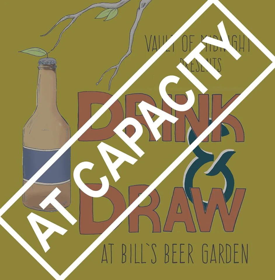 This event is completely and totally full! If you would like to be added to a waitlist in case any spots open up, please contact Vault of Midnight with your name, phone number and email address, and we will add you to the queue. And stay tuned, we may be having another Drink & Draw very soon!
