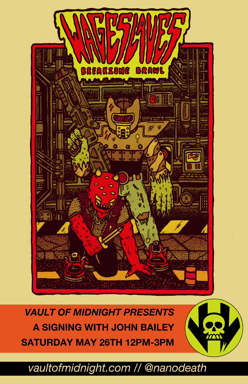 Wage Slaves: Breakzone Brawls hits Vault Grand Rapids' shelves Saturday, May 26th, and John Bailey will be signing from 12-3! Get in touch with us today to reserve a copy, or pick one up at the event.
