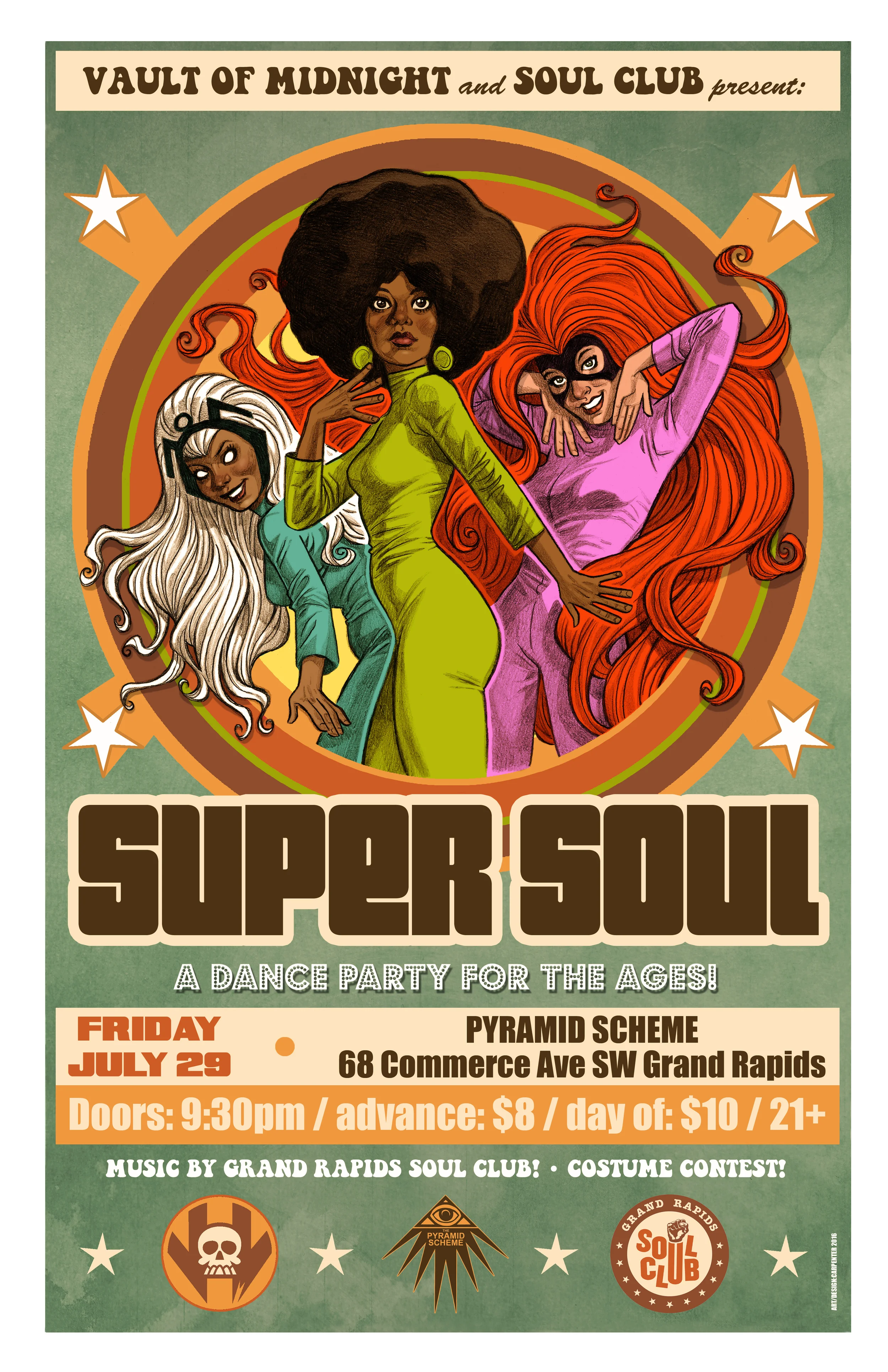 Vault of Midnight and Grand Rapids Soul Club unite in the ultimate crossover event to bring you a dazzling evening of funk, soul, and retro superheroes.